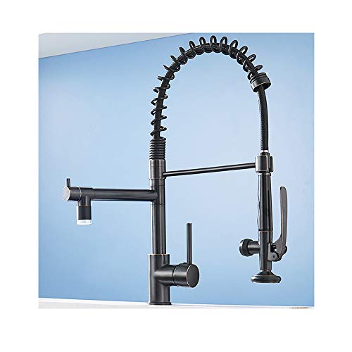 TANGAN Nero LED Rubinetto da Cucina con Molla a Spirale, Rubinetto e Doccetta Estraibile, Orientabile a 360°, Lavello Ottone per Cucina Acqua Fredda e Calda