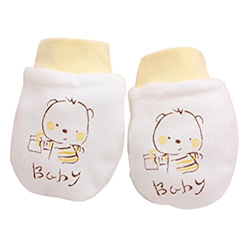 Tangbasi 2 paia neonato antigraffio guanti da bambino morbido cotone giallo Yellow taglia unica