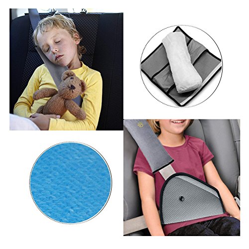 Tangger Cintura Auto Bambini, 4 Pezzi Auto per Bambini Cuscino,Ideale Come Cuscino Supporto per la Testa,Sicurezza in Auto per Bambini Cuscino Spalla Cuscino Cintura(Blu & Grigio)