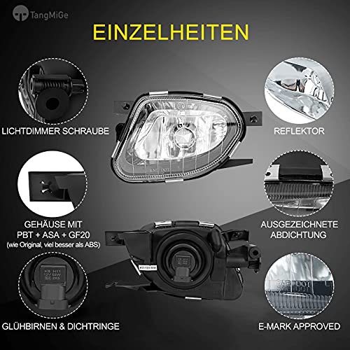 TangMiGe Fendinebbia compatibile con Mercedes Benz Classe E (W211 S211) 06/2004-06/2006, Upgrading 03/2002-05/2004, Sprinter (906) 06/2006-08/2013, 1 Paio, Chiaro