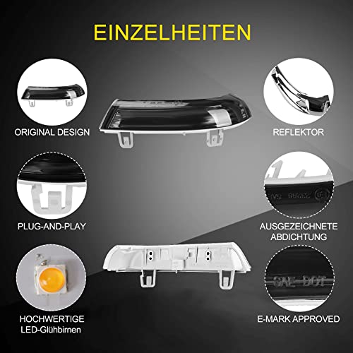 【COMPATIBILE CON】- Indicatore Laterale compatibile con Volkswagen VW Golf V (1K1/1K5), Golf VI WAGON(5K1/AJ5), Sharan (7M8/7M9/7M6), Eos (1F7), Golf Plus (5M1/521), Jetta III (1K2), Passat (3B3/3B6), Passat (3C2/3C5);