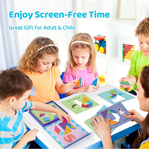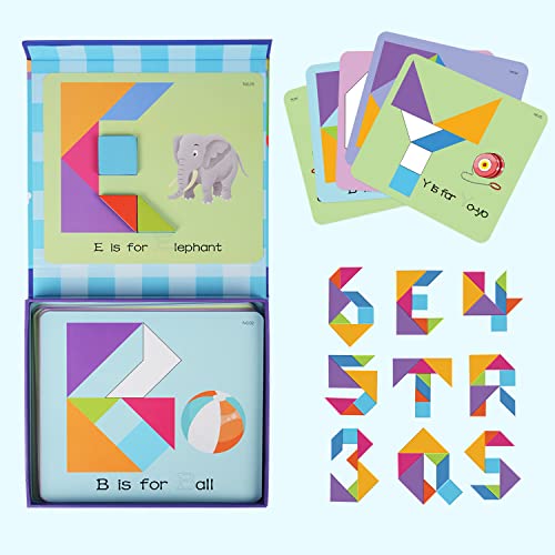 Tangram Puzzle, Magnetico Geometrico Viaggio Road Trip Games, Pattern Blocks Giocattoli Educativi per Bambini Età 3-8, Kindergarten Classic STEM Puzzle con 24 Pz Carte (Numero e Alfabeto)
