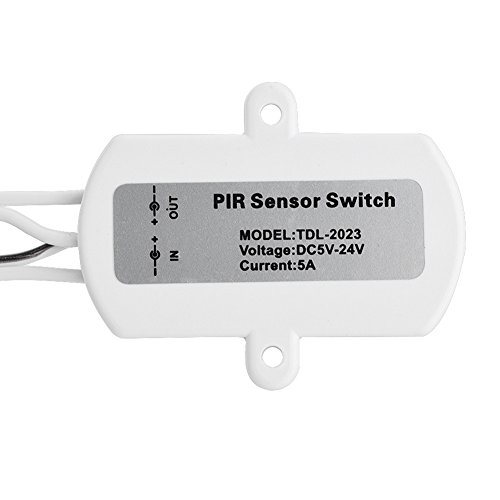 Tangxi Interruttore del sensore di Movimento PIR, 5A DC 6-24V Mini Interruttore del rivelatore del sensore di Movimento a infrarossi PIR/Striscia LED Interruttore Automatico(Bianca)