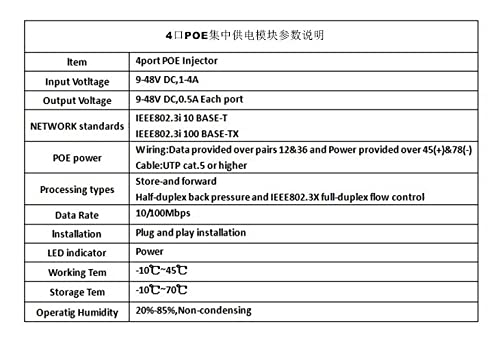 Tangxi Modulo di Alimentazion, 4 Port Poe Iniettore di Alimentazione 12V-48V PC/Hub/Switc/Router Poe Switch Ethernet con IEEE802,3af / 802at per Telecamera IP
