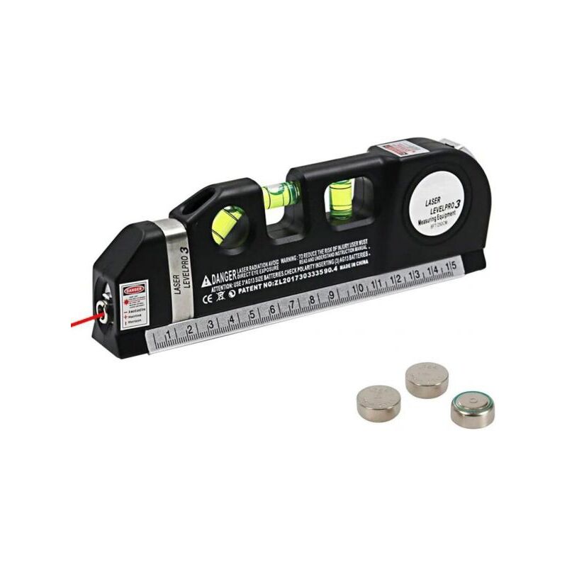 Livella laser multifunzione professionale per diverse situazioni di utilizzo. Oltre alla funzione di livella al suo interno è integrato un metro, un raggio laser per una misurazione con maggior precisione, un righello per piccole misurazioni. Si alimenta con 3 batterie piccole, inoltre sul lato è presente l'interruttore per l'accensione del laser.Le caratteristiche includono tre diversi livelli di livellamento della parete (orizzontale - verticale - diagonale), righello standard metrico (15cm) e di un metro avvolgibile di 250cm.Ideale per: Pensili o Scaffalature pesanti, Livellamento lavoro Trim, Soffitti e pavimenti, Accordi quadro. Caratteristiche tecniche: Corpo in plastica resistente Lunghezza del metro: 250 cm 3 Posizioni/livella per una misurazione più accurata Righello per piccole misurazioni: 15 cm Tre bolle di livellaggio Tre diverse impostazioni di luce laser: croce - orizzontale - verticale La confezione contiene: Nr. 1 Livella laser professionale Nr. 3 Batterie incluse