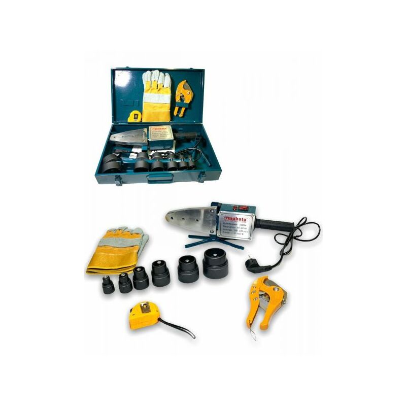 POLIFUSORE SALDATORE 2000W 6 MATRICI PER SALDATURA TUBI PLASTICA PVC PVDF Kit Polifusore per saldatura di tubi polipropilene (PVC,PP-R,PE) per impianti idraulici e termici.All'interno della comoda valigetta in metallo sono compresi, oltre al polifusore 6 matrici, un supporto per appoggiare il polifusore più altri accessori, inoltre è dotato di un termostato per la regolazione della temperatura da 50 a 300° con una potenza di 2000W. Caratteristiche tecniche: 6 matrici del diametro: 20, 25, 32, 40, 50, 63 mm. Alimentazione: 220V ~ 50Hz Potenza: 2000W Temperatura della superficie della matrice: 0°C a 300°C La confezione contiene: 1 Polifusore da 2000W 6 Matrici 1 Supporto poggia polifusore 1 Paio di guanti 1 Metro 1 Valigetta per trasporto