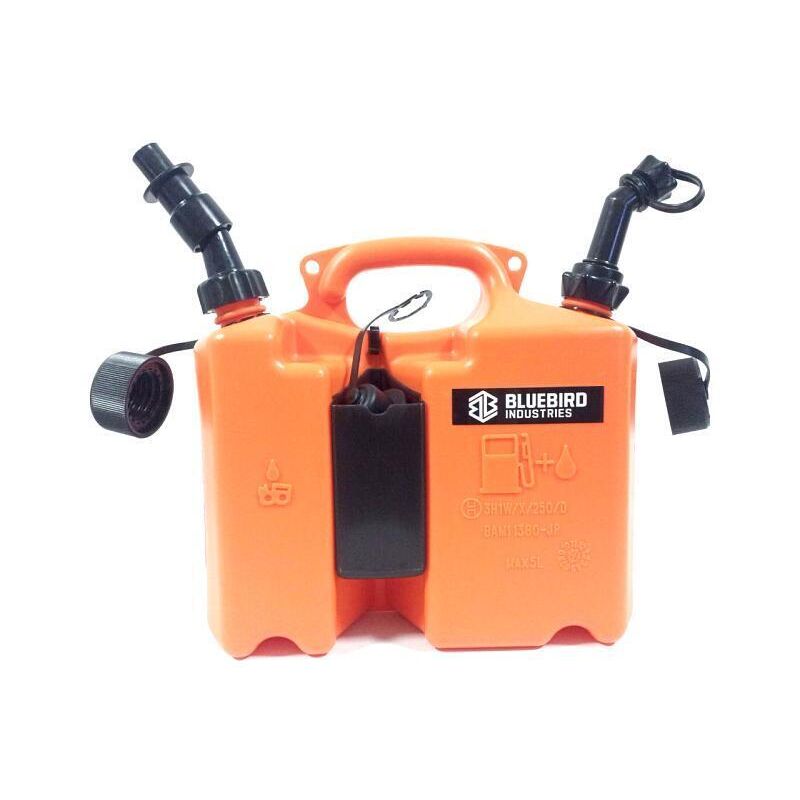 BLUE BIRD 755130 TANICA COMBI 5+3 Tanica BLUE BIRD completa, doppio serbatoio da 5 litri per il carburante e da 3 litri per l'olio catena. Completa di beccucci ad arresto automatico. Dotata inoltre di scomparti per gli accessori;