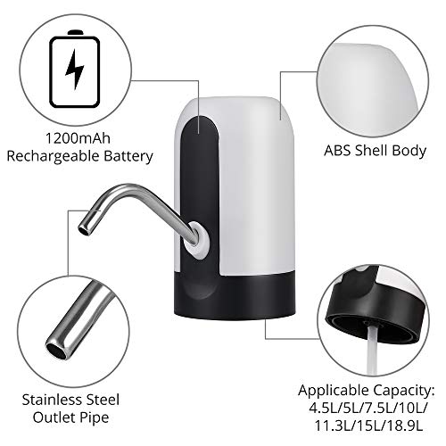 【Ricaricabile USB】Batteria Ricaricabile Incorporata da 1200 mAH Può Essere Utilizzata per 30-40 Giorni o circa 4-6 Bottiglie di Acqua da 5 Galloni dopo Una Volta Carica Completa. E Non è Necessario Ricaricare Ogni Giorno.