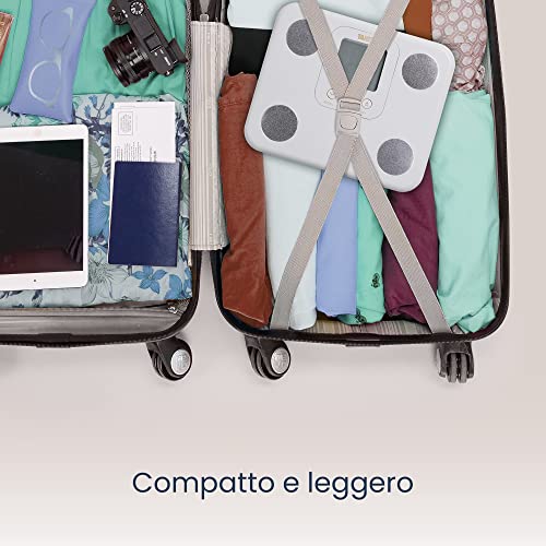 9 Misure della composizione corporea: peso, massa grassa, massa muscolare, grasso viscerale, acqua corporea totale, apporto calorico giornaliero (DCI) kcal, età metabolica, valutazione fisica, massa ossea