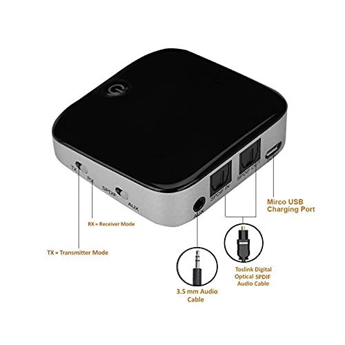 TANKE Wireless Bluetooth 4.1 Trasmettitore Ricevitore Audio Music Adapter AUX Digital Optical SPDIF, 2,36x2,36x0,72 Pollici