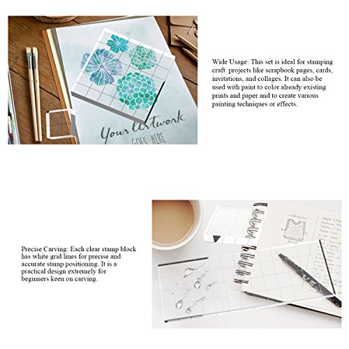 Intaglio preciso: ogni blocco di timbri trasparente ha linee bianche per un posizionamento preciso e preciso. Si tratta di un design pratico estremamente per i principianti appassionati di intaglio