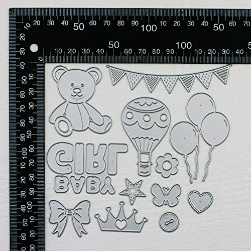 TankMR - Fustelle in metallo, motivo: orso e palloncino, per goffratura, per fai da te, album di ritagli, biglietti, decorazioni artistiche, colore: argento