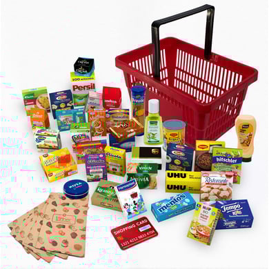 Il Kaufl aden set di 42 pezzi è l'aggiunta perfetta al tuo Kaufl aden . Il set consiste in un cestino della spesa con 30 miniature, 5 sacchetti di carta, 4 parti in plastica e un barattolo Metal . Dettagli del prodotto: Dimensioni (lunghezza x larghezza x altezza): 29 x 22 x 13 cm. Contenuto: cestino con 30 miniature, 5 sacchetti di carta, 4 parti in plastica, 1 Metal ldose Materiale: plastica Età: da 3 anni