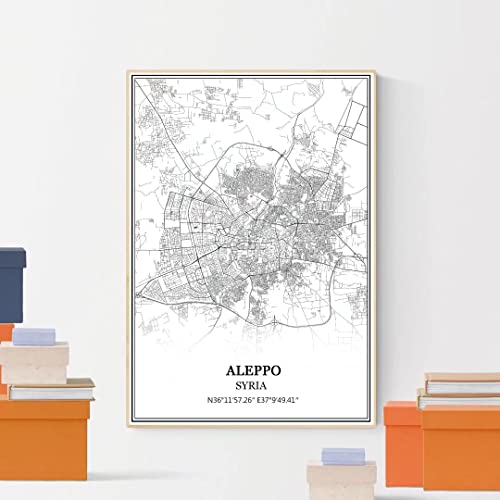 TANOKCRS Aleppo Siria Mappa Wall Art Canvas Print Poster Artwork Senza cornice Moderna Mappa in bianco e nero Souvenir Gift Home Decor - 16x20 inches