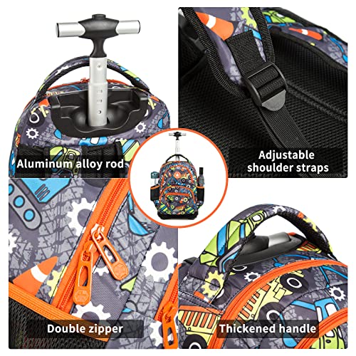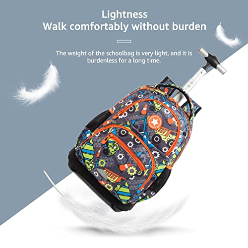 Tanou 2022 Zaino Trolley Scuola Elementare Bambino 3 Pezzi, 32 Litri Leggero Impermeabile Zaini Trolley Asilo per Bimbo, Zaino con Ruote con Borsa Termica Astucci, per Scuola Viaggiare, Camion