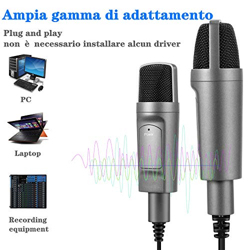 [Pickup cardioide] questo microfono ha una modalità pickup cardioide, che può catturare il suono chiaro, regolare e nitido davanti al microfono ed evitare il rumore di fondo.