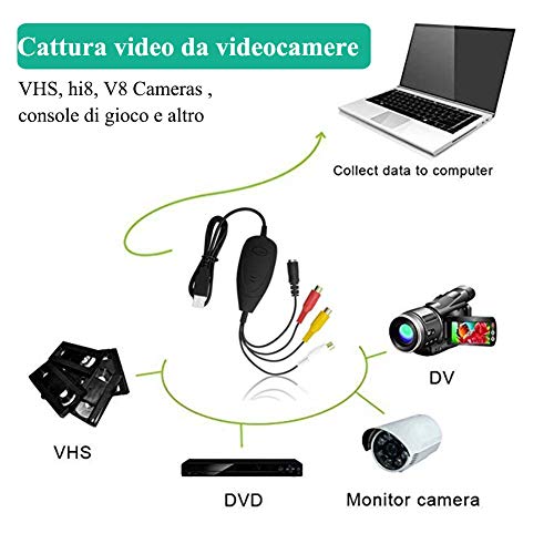 Tanouve USB Video Grabber - Scheda Acquisizione Video Convertitore VHS in Dvd per Windows 10