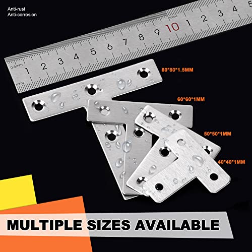 Tanstic 100 staffe piatte ad angolo a T da 50 x 50 mm, con viti, in acciaio inox, piastre a T a forma di T, staffe di riparazione a T, in acciaio inox resistente