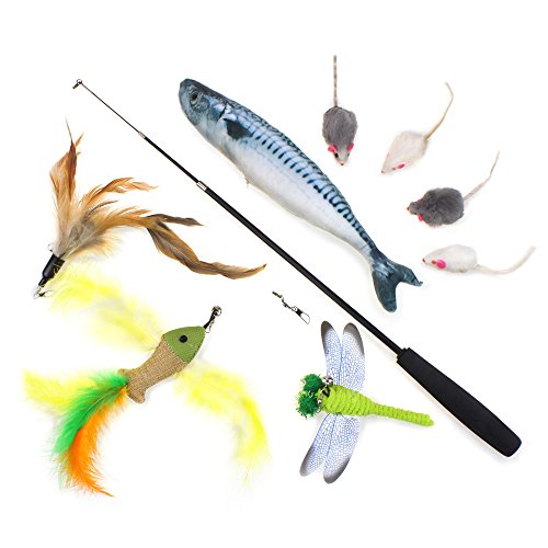 TaNuKi Ko Gatto Giocattolo Set 9 Pezzi (Giocattolo di Piume + Mouse Giocattolo+ Giocattolo con Pesce Catnip)