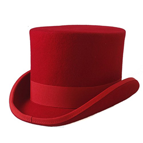Tanxinxing Steampunk Mad Hatter Cappello da Camino Vintage Vittoriano Cappello da Cilindro Tradizionale in Lana Fedora (Colore: Rosso, Dimensione: 55CM)