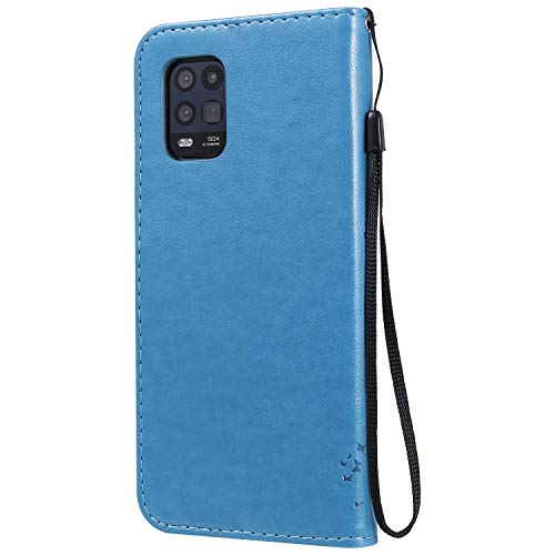 TANYO Cover Adatto per Xiaomi Mi 10 Lite 5G, Retro Flowers Design Pattern Custodia in PU Pelle con Flip Wallet Case Blu