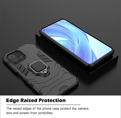 TANYO Cover + [2 Pezzi] Vetro Temperato per Xiaomi Mi 11 Lite (4G / 5G / 5G NE), TPU/PC Dual Layer Armor Antiurto Protezione Custodia [360° Supporto] con Durezza 9H Pellicola Protettiva, Nero