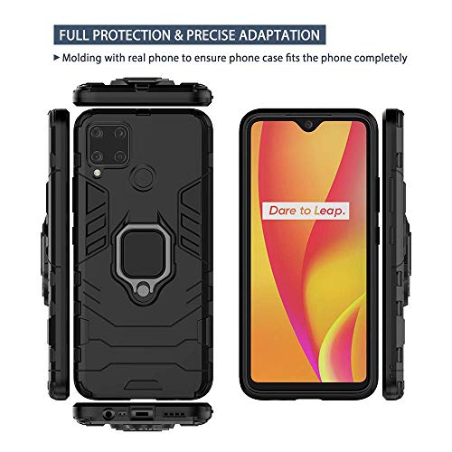 TANYO Cover per Oppo Realme 7i / Realme C15, Custodia TPU/PC Hybrid Custodie con 360° Supporto, Antiurto Guscio Protezione Bumper Case Caso, Nero