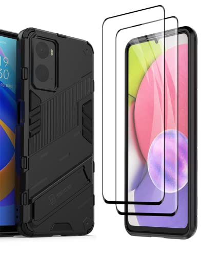 TANYO Cover per Oppo Realme 9i [ con 2 Vetro Temperato ], Custodia Protettiva con Supporto, Robusto Antiurto TPU Dual Layer Armour Case - Nero.