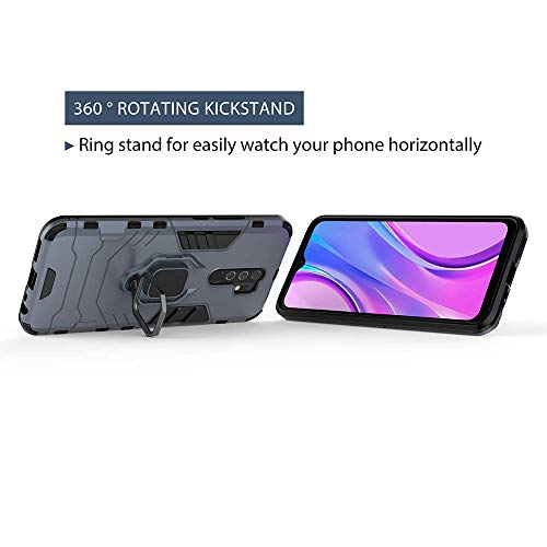 TANYO Cover per Xiaomi Redmi 9, Custodia in TPU/PC Armor Custodia con Holder Support, Hybrid Silicone Case Antiurto Bumper Cover, Blu
