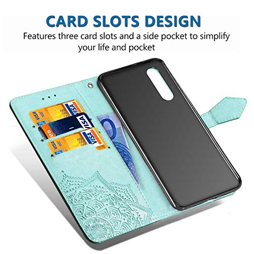 TANYO Custodia Adatto per Oppo Reno 2, Retro Flowers Design Pattern Custodia in PU Pelle con Flip Wallet Case. Verde
