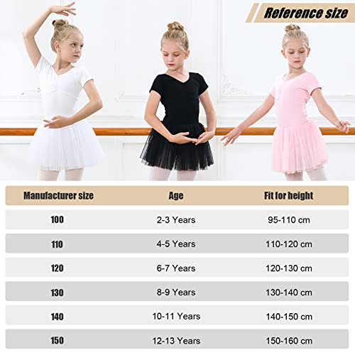 Tanzdunsje Ragazze Vestito da Balletto Body Danza Tutu Body Morbido Cotone con Maniche Corte con Fiocco Grande e Carino (150 (adatto per età:12-13anni, altezza:150-160cm), Nero Manica lunga)