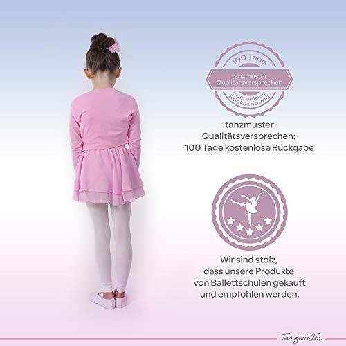 Tanzmuster Top Corto da Danza Classica 'Mia' con Maniche Lunghe per Bambini in Rosa, 116/122 (7-8 Anni)