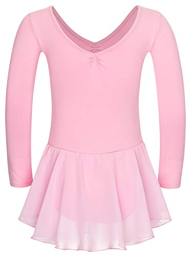 Tanzmuster Body da Danza Classica 'Anna' con gonnelino in Chiffon per Bambini in Rosa, 140/146 (11-12 Anni)