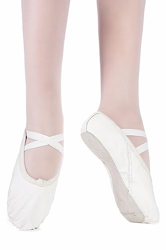 Tanzmuster Sasha, Mezze Punte Danza Classica in Pelle, Suola Unica in Cuoio, Bambini e Adulti - Bianco calcare, 22
