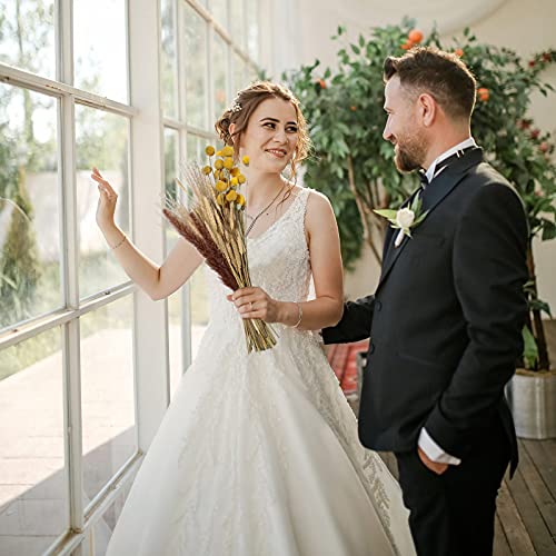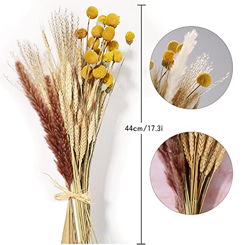 Taomika 100 Pezzi Spighe di Grano Decorative, Erba Secca di Pampa, Craspedia, Grano Secco Naturale, Bouquet di Fiori Secchi per Composizione Floreale, Matrimonio, Casa, Fotografia (Senza Vaso)