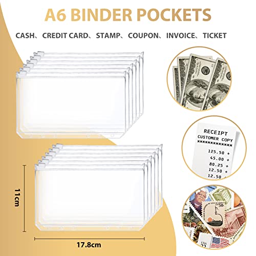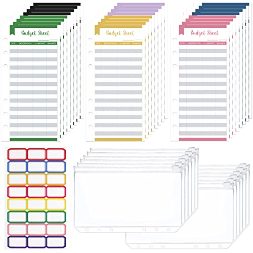 TAOPE 36Pcs Accessori per Raccoglitori di budget A6, 6 Fori Trasparente Cartelle con Cerniera Sacchetti Impermeabili, 24 A6 Budget Sheet per Raccoglitori di budget e Adesivi, per Carte Denaro Moneta