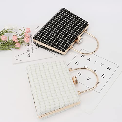 La pochette da sera da donna è realizzata in tessuto di lana all'esterno, fodera in raso, design squadrato e manico superiore in metallo color ottone antico per rendere la borsa più elegante e vintage.