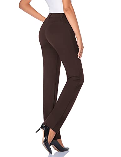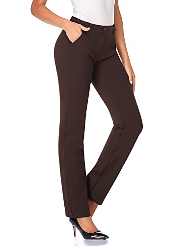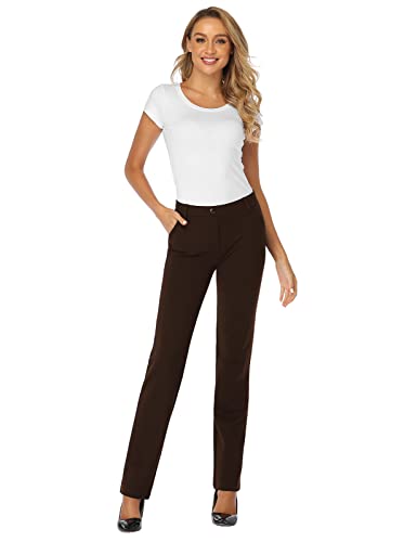 Tapata, Pantaloni da donna eleganti, dritti ed elasticizzati, con tasche, per statura alta, normale o bassa, lunghezza 28''/30''/32''/34'', per ufficio e lavoro - marrone - S x 32L