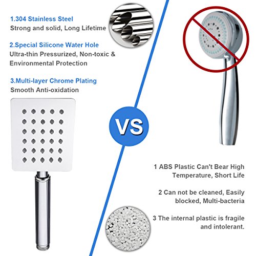 ● Cromo in acciaio inox 304 placcato - Con la resistenza alla corrosione dei docce portatili, stabilità termica, alta resistenza, non facile da rompersi, più sicuro. Utilizzare un pezzo di stampaggio e processo cromato per garantire che gli angoli non perdano, bello e durevole.