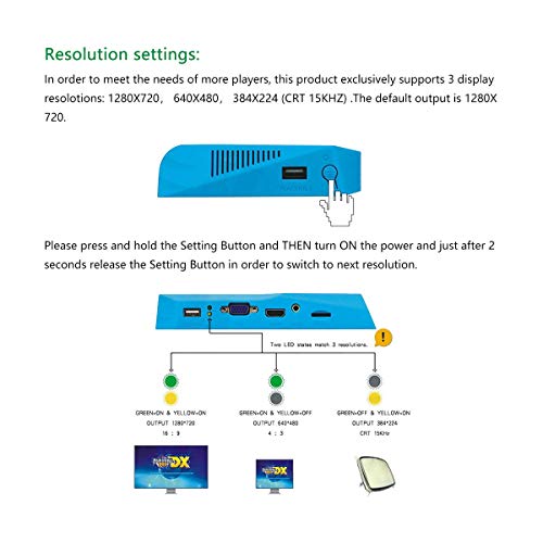 [Uscita digitale ad alta definizione]: per soddisfare le esigenze di più lettori, questo prodotto supporta esclusivamente 4 risoluzioni del display: 1280 * 720, 1024 * 768, 640 * 480, 384 * 224 (CRT 15KHz). L'output predefinito è 1280 * 720.