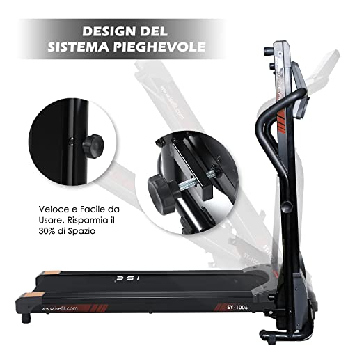 ISE Tapis Roulant Pieghevole Elettrico, Motore 10 km/h 750W, Folding Treadmill con Schermo LCD per Velocità, Tempo, Distanza e Calorie, Ideale per Casa/Ufficio, Max.100 kg, SY-1006