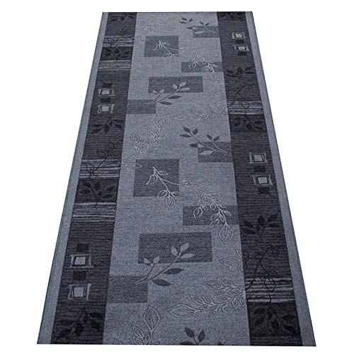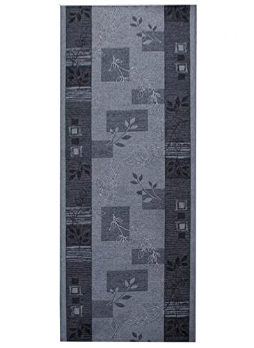 TAPISO Agadir Tappeto Passatoia Al Metro Runner Corridoio Cucina Ingresso Entrata Ufficio Bigio Grigio Foglie Moderno Floreale Antiscivolo Pelo Corto 67 x 300 cm