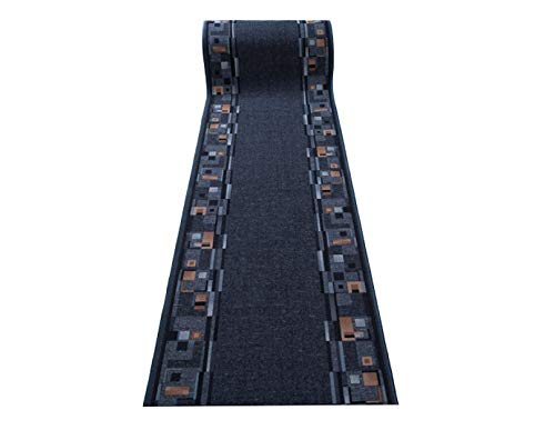 TAPISO Agadir Tappeto Passatoia al Metro Runner Corridoio Cucina Ingresso Entrata Ufficio Grigio Scuro Geometrico fumé Moderno Antiscivolo Pelo Corto 67 x 350 cm