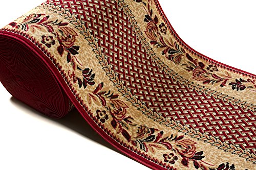 TAPISO Atlas Tappeto Passatoia al Metro Entrata Casa Corridoio Classico Beige Chiaro Rosso Floreale Rete Fiori A Pelo Corto 80 x 190 cm