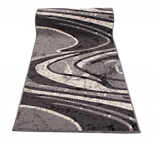 TAPISO Dream Tappeto Runner Passatoia per Corridoio Cucina Ufficio Entrata Ingresso Sala Design Moderno Motivo Geometrico Astratto Onde tonalità di Grigio Pelo Corto 120 x 550 cm