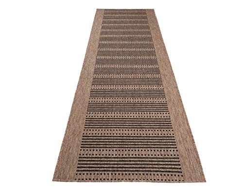 TAPISO Floorlux Tappeto Passatoia al Metro Sisal Cucina Sala Entrata Ingresso Corridoio Salotto Moderno Marrone Nero Stampato Geometrico Righe Interno 80 x 720 cm