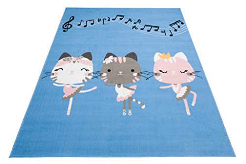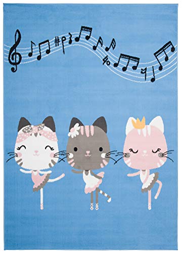 TAPISO Jolly Tappeto Bambini Cameretta Bimbi Gioco Colorato Animali Gatti Multicolore Blu A Pelo Corto 300 x 400 cm