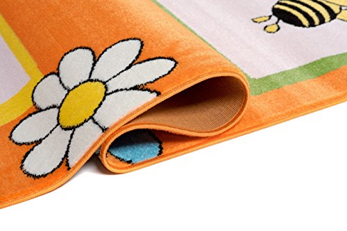 TAPISO Kinder New Tappeto Bambini Moderno Stanza da letto Stanza bambini Traffico Arancio Farfalle Animali 80 x 150 cm
