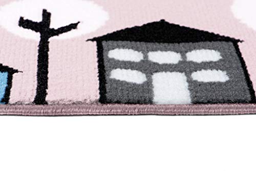 TAPISO Pinky Tappeto Gioco Bambini Pelo Corto Design Moderno Motivo Città Strade Rosa Grigio Sicuro Oeko-Tex Morbido Cameretta Stanza Bambini Camera Bimbi 180 x 250 cm