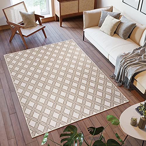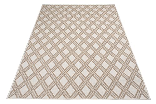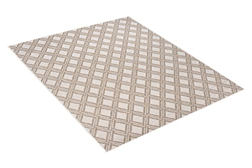 TAPISO Tappeto Capri per Esterno e Interno Cucina Terrazza Ingresso Balcone Terrazzo Motivo Geometrico Piccoli Rombi a Scacchi Pelo Corto tonalità Crema Beige 120 x 170 cm